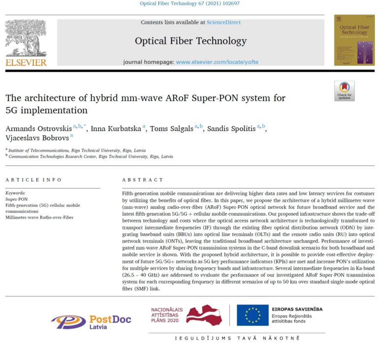 A new scientific article is published in MDPI Entropy, with the contribution from the RTU ComTech, Institute of Telecommunications, KTH Royal Institute (Applied Physics Department), RISE Research Institutes of Sweden, and Sumy State University (Department of Electronics and Computer Technology). The article proposes…